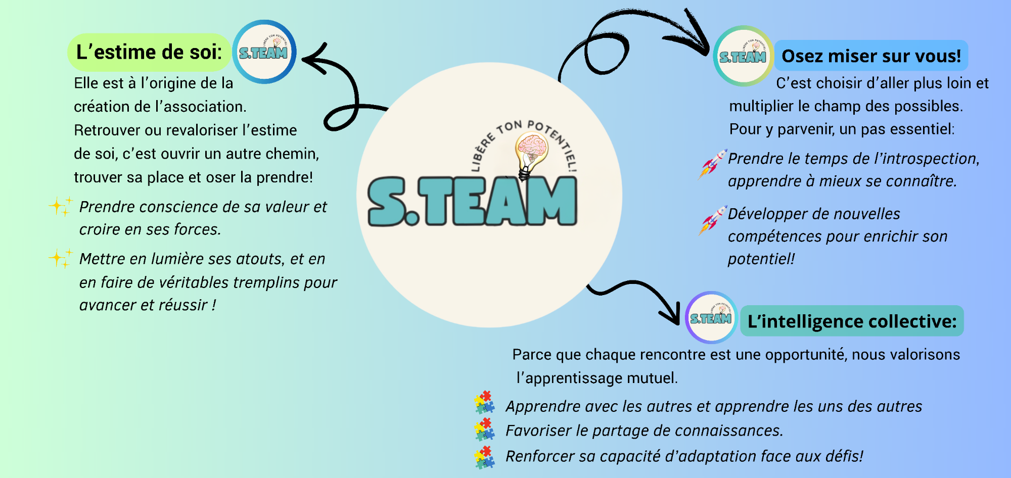 Notre engagement: : libérer le potentiel de chaque individu grâce à l’éducation, la culture et le développement personnel, pour favoriser la confiance, la créativité et l’épanouissement de tous.